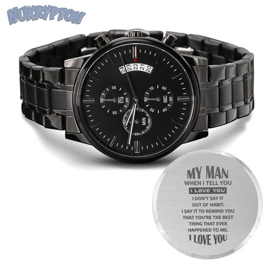 Personalized Watches For Dad - Engraved Black Chronograph Watch